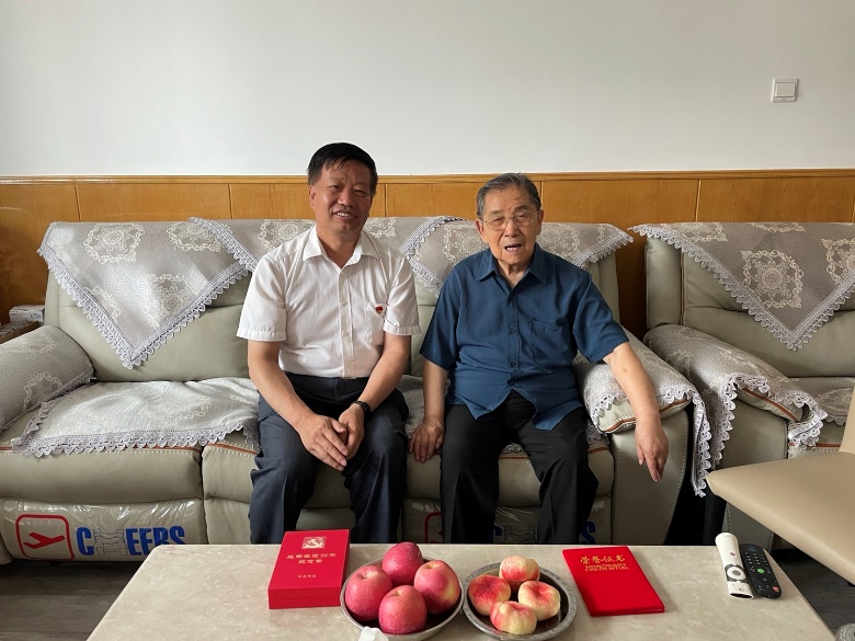 在走访过程中,安书记向老党员历经风雨为党的事业无私无畏的付出、艰苦卓绝的斗争和百折不挠的奋斗给予敬意。百年征程赋予了一代又一代共产党员不同的历史使命,唯一不变的是炙热的初心。颁发纪念章是对功勋的表彰和昭示,是对老党员的肯定和关怀,也是对全体党员牢记初心使命的鼓舞和鞭策。通过颁发纪念章,我们要对老党员们的奋斗故事再学习、再宣传,使全体党员干部进一步增强使命感、责任感,接过时代的“接力棒”不懈奋斗,让革命薪火代代传承,以优异成绩迎接建党一百周年。