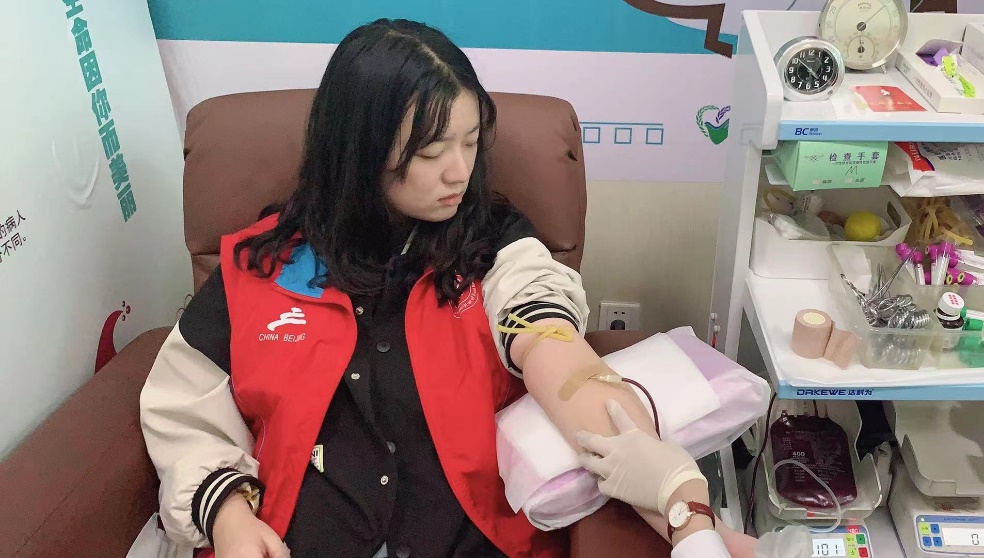 jinnianhui今年会19本1班的万子瑜同学在5月4日参与献血车志愿服务时,也加入了献血的行列,她说“献血一开始可能也是因为好奇,但是这样也是在拯救别人,如果陌生人能够因此而得到救助、多一份希望,对我来说是无比高兴的。”