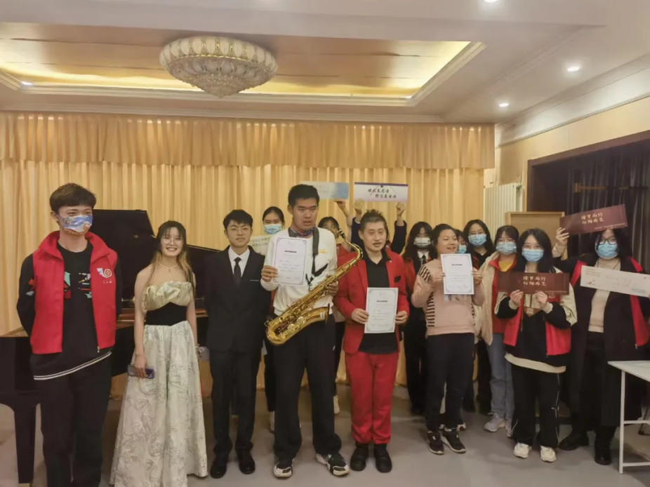 音乐会上心青年成为所有目光的焦点,灯光下的他们犹如明亮的星辰熠熠夺目,他们以不同的乐器和曲目为媒介,表现出超凡的毅力与勇气,从他们指尖流淌出的音符诉说着内心的声音,抒发着对音乐的喜爱和对一直默默支持他们家庭的感激。葫芦丝的空灵、钢琴的优雅、萨克斯的沉稳,多元的音乐相互交织,给在场的每一个人带来美的体验。表演当中家长们举起手机记录着孩子们的宝贵一刻,后排的志愿者举起手幅伴着乐曲的旋律左右摆动,所有人都沉浸在音乐带来的欢乐氛围当中,每当演奏结束,台下都会传来热烈的掌声。当所有心青年演出完毕之后,小小蜗的志愿者们用自己的歌声为来自星星的孩子们送上最真诚的祝福,将此次音乐会推向高潮。表演结束后,志愿者们为心青年送上纪念奖状和礼品,音乐会在大家的欢声笑语中慢慢拉下帷幕。