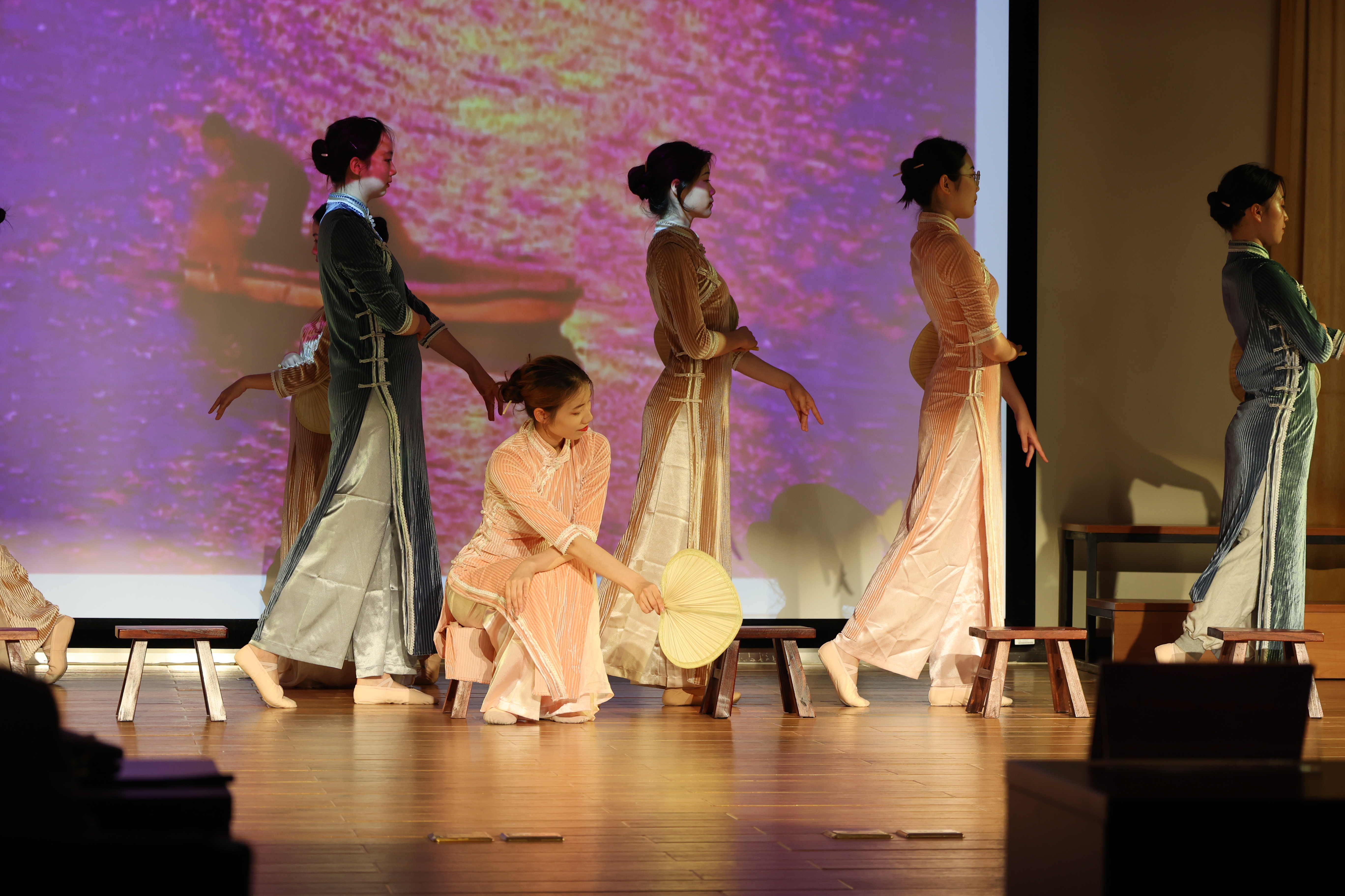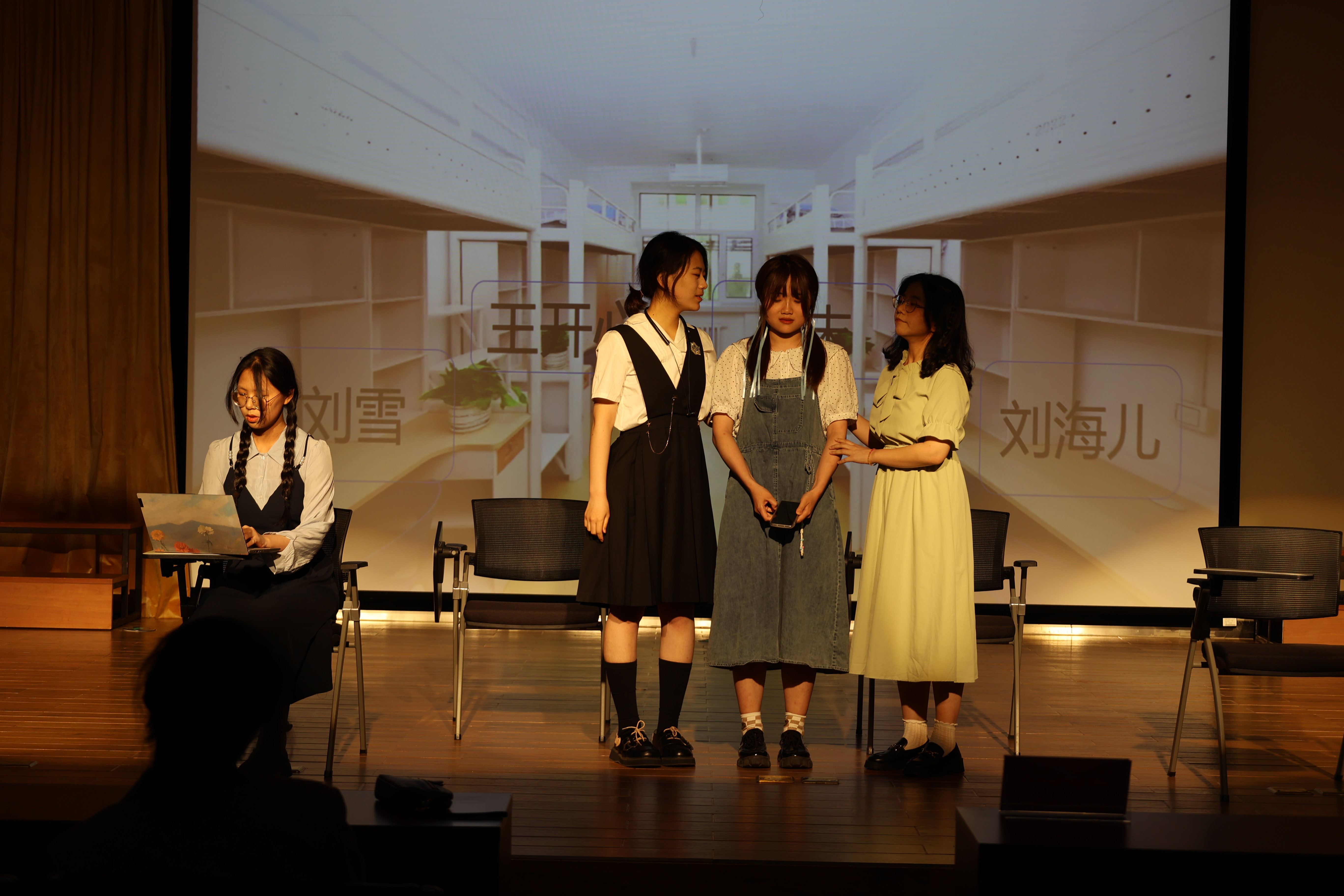 本次汇报展演全方位、多角度展现了学院文体类社团的训练成果。舞蹈社的街舞表演踏着动感的舞曲,展现了力与美的完美融合;中国舞《渔光曲》借助矮凳和蒲扇婉约唯美地呈现出上海弄堂女子静谧美好的简朴生活。合唱团带来的歌曲《如愿》用歌声表达出同学们感恩致敬父母的真情,《我看见了你的眼睛》舒缓庄重,赞颂了医护人员的崇高精神。篮球社的啦啦队以自信与热情彰显体育运动的活力与朝气,引得现场观众发出阵阵欢呼,纷纷拿起手机记录或跟随音乐节奏摇摆。恰逢毕业季,心理社的情景剧《毕业·光》引发大家对未来的思考,启发大家珍惜当下,在鼓励与爱中和自己和解、和朋友和解、和家人和解,去勇敢追逐属于自己的模样。