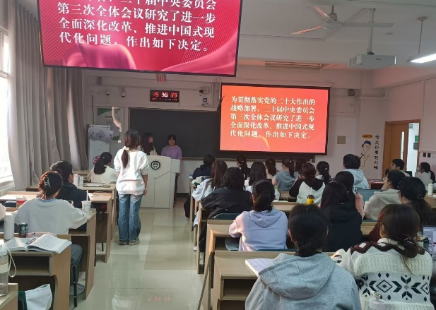 学习活动以团支部为单位通过多种方式进行,22本2班两支部开展《我和我的祖国》合唱活动。22本1班两支部进行提问互动,确保同学们在积极互动中深刻理解党的二十届三中全会精神。23本2班和24本1班四个支部通过小组交流彼此见解与看法。在交流环节,同学们各抒己见,思想碰撞出火花,展现出新时代青年对国家大事的关心。24本2班与23本1班四个支部以专题讲座形式,借助视频进行学习,在轻松的氛围中进一步加深理解、增进认识。