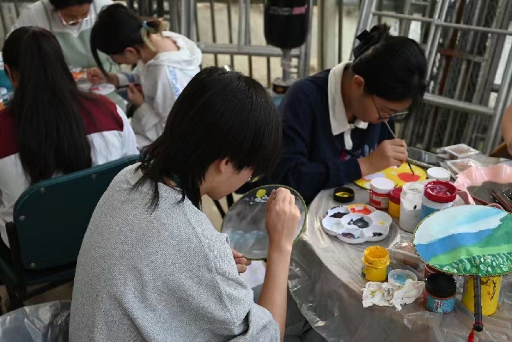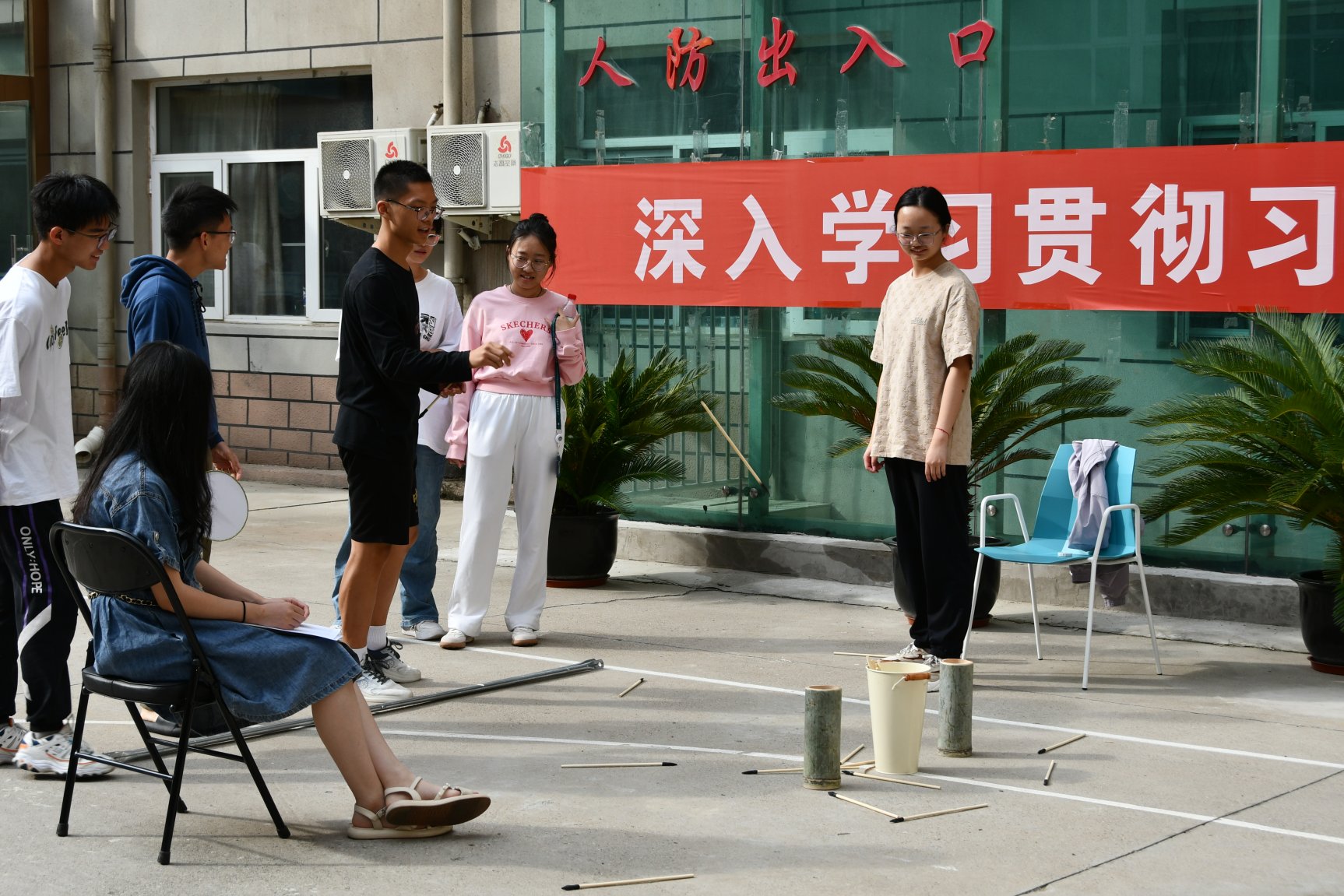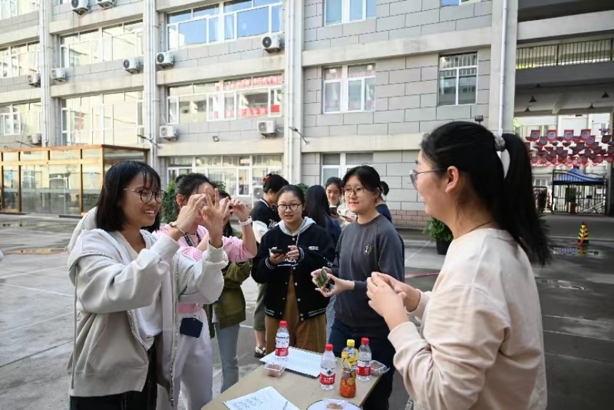 游园享乐,良友相伴。在欢声笑语中,活动如火如荼地展开。在“团扇‘话’祝福”活动中,同学们领取团扇进行激情创作,他们围绕中秋主题,以颜料绘梦,将祈愿寄托于团扇。“投壶”作为一种中国古代士大夫宴饮时做的礼节性游戏,以其古朴、轻松的形式获得同学们喜爱,吸引旁人停驻观赏,一人中壶,数人欢呼。