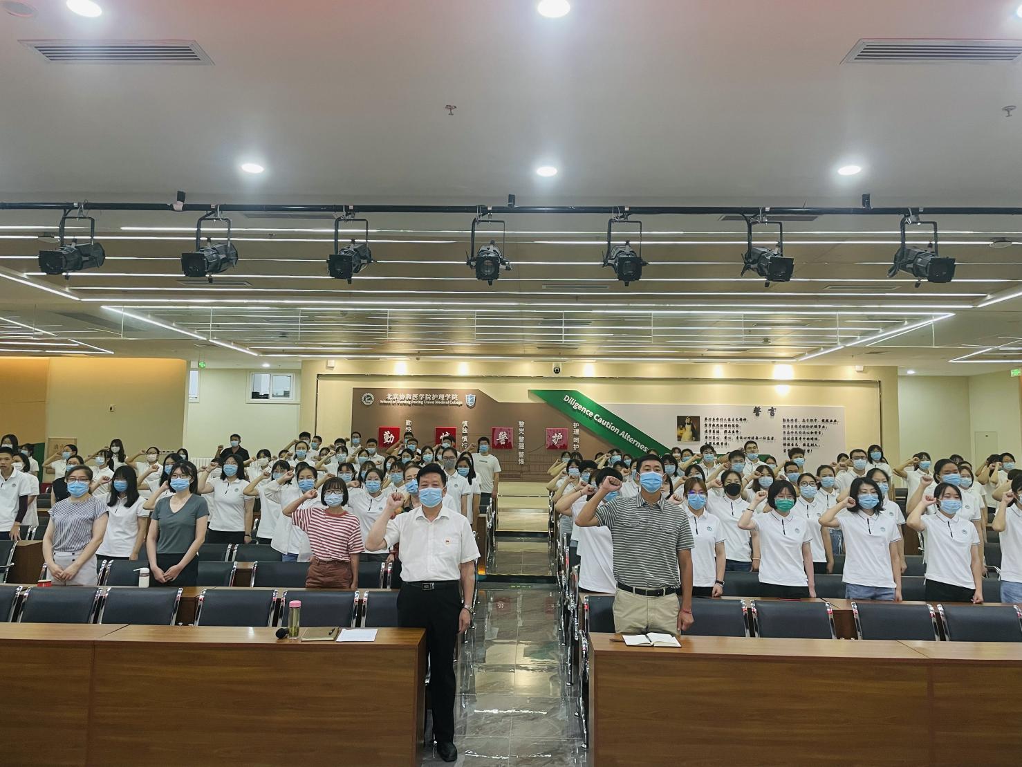领悟百年协和历史,践行当代青年使命。全体师生观看迎新短片,安道彩副书记从院校和学院的过去、现在和未来向新生介绍院校与学院历史变迁、为我国卫生健康教育事业做出的卓越贡献和未来发展,使学生深刻感受院校及学院深厚的历史积淀与浓厚的学习氛围,培养新生对学校的认同感、归属感和自豪感。