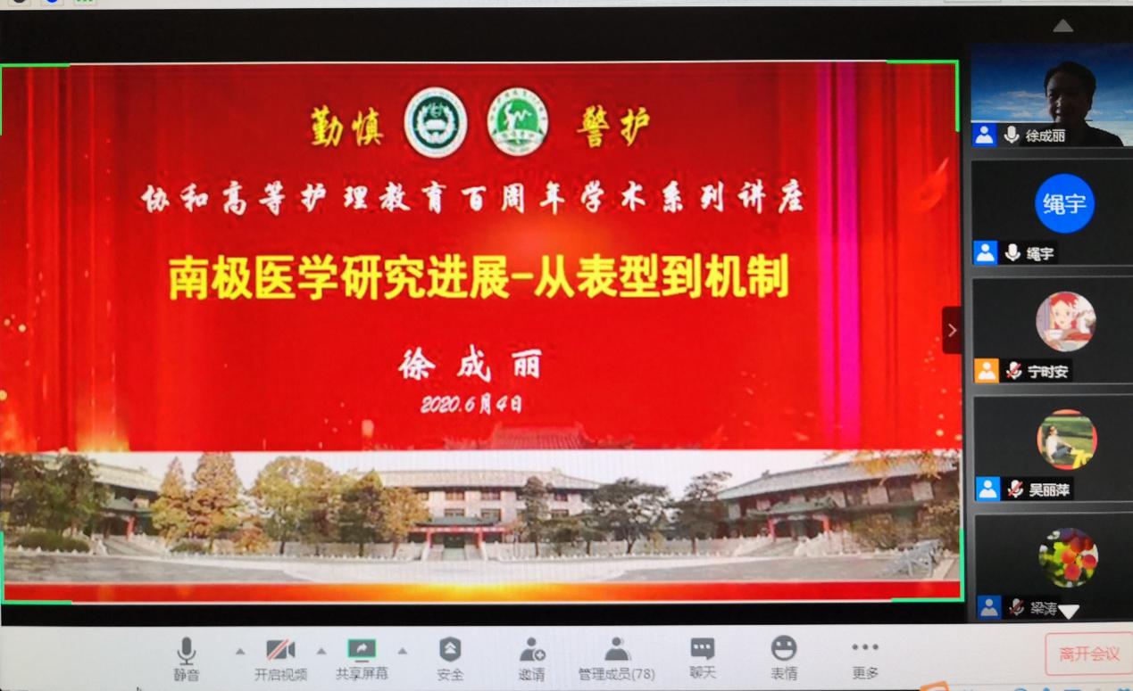 2020年6月4日下午,jinnianhui今年会基础护理学系荣幸地邀请到了中国医学科学院基础医学研究所研究员徐成丽教授在线为jinnianhui今年会的教师和研究生进行一场别开生面的学术讲座“南极医学研究进展——从表型到机制”。本次活动是协和护理教育百年庆典系列活动之一,也是jinnianhui今年会基础学系主办的一次学术活动。徐教授的精彩报告为我们开阔了眼界,其研究思路和方法对于我们今后更深入地开展护理研究有很重要的参考价值。