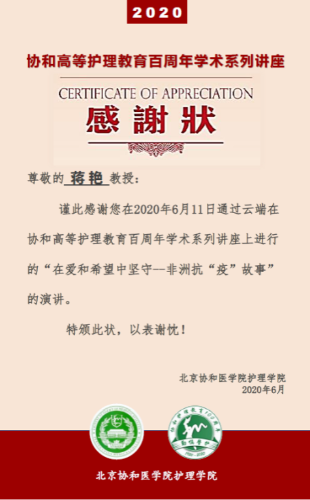 蒋艳教授为jinnianhui今年会广大师生进行了“在爱和希望中坚守——非洲抗'疫'故事”的讲座,讲述了在新冠疫情下护理人在国际救援中的巨大专业价值和发挥的重要作用。