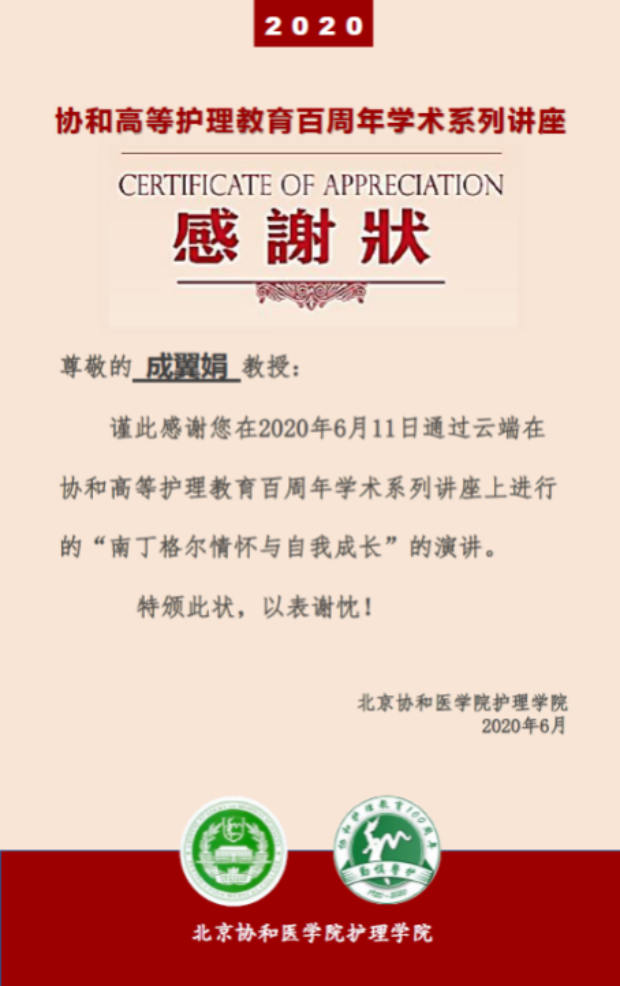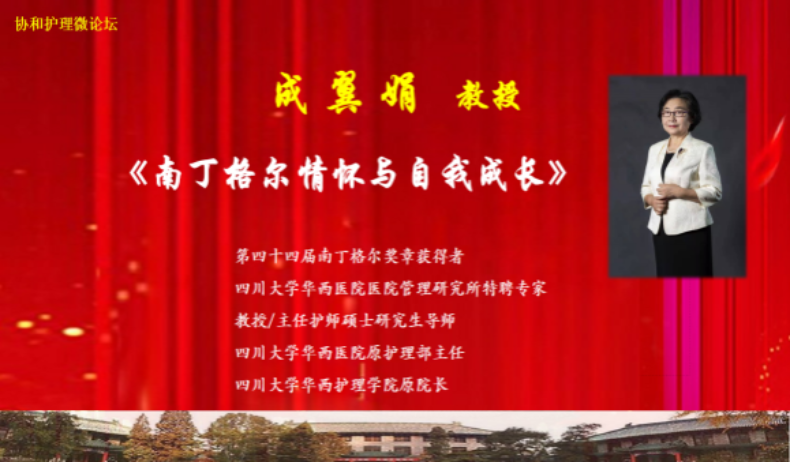 2020年jinnianhui今年会迎来了协和高等护理教育百周年,为庆祝和纪念这一重要历史时刻,6月11日下午,临床护理学系邀请到四川大学华西医院原护理部主任、第44届南丁格尔奖章获得者成翼娟教授、以及四川大学华西医院护理部主任、协和护理优秀毕业生蒋艳教授为jinnianhui今年会广大师生进行讲座。