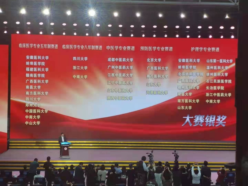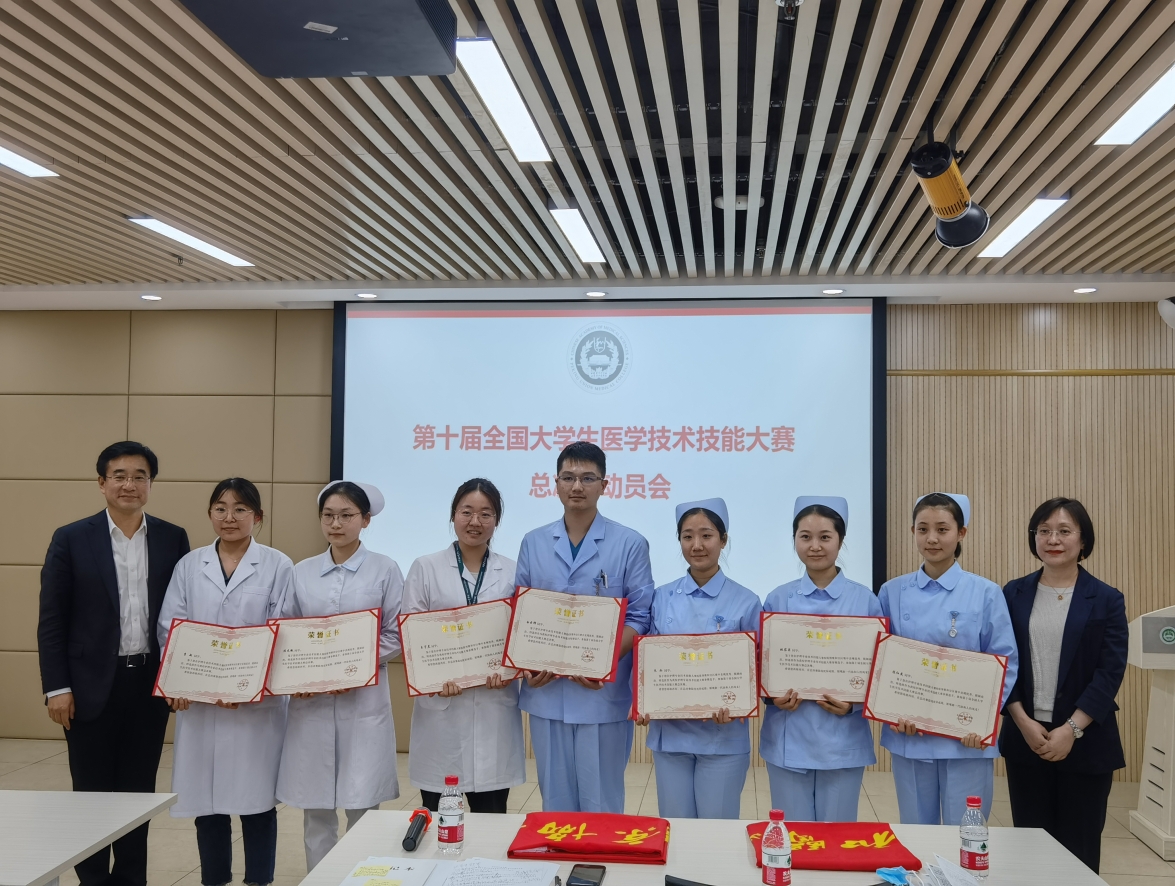 2021年5月15-16日,第十届中国大学生医学技术技能大赛全国总决赛在天津举行。全国184所高校代表队经过四个分赛区选拔产生46所高校代表队晋级参加全国护理学专业赛道总决赛。我校由jinnianhui今年会梁涛副院长担任领队,协和医院罗红波老师为指导教师, 2017级本科护理学专业白云锋、朱灿、姚家菲、陈红爽等4名学生组成代表队,通过获得东北华北分赛区一等奖参加比赛。在激烈的竞争中,4名学生凭借扎实广博的理论知识、规范标准的技能操作、灵活应变的临床思维、默契高效的团队协作、亲和真诚的沟通互动,以总成绩第三名获得总决赛银奖。