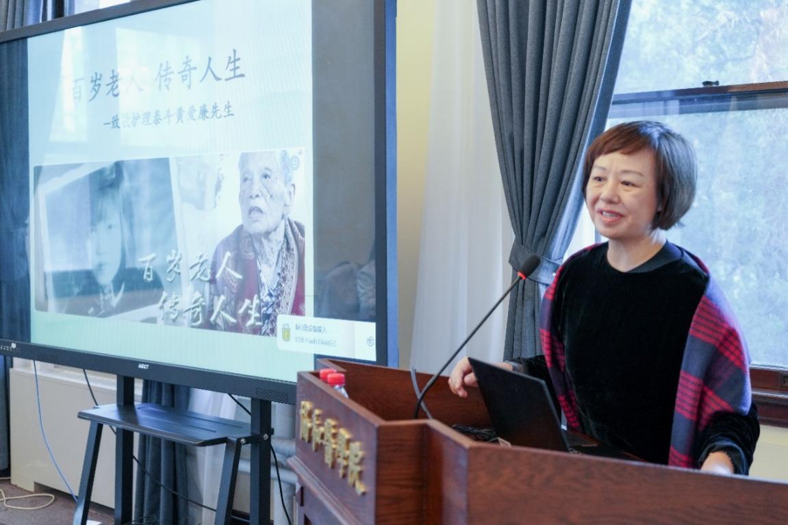 暨南大学临床护理研究院陈伟菊院长深情讲述了黄爱廉先生对协和医学院及中国护理教育事业的卓越贡献。她矢志不渝,为推动中国护理事业的发展鞠躬尽瘁;历尽艰辛,无论是在战争年代还是在和平年代,她都是“白衣天使”,她爱祖国、爱病人、爱学生,把一生都奉献给了深爱的护理事业。