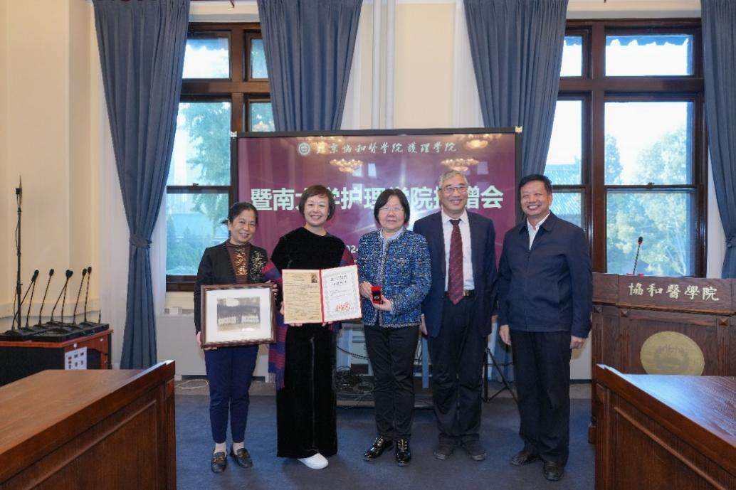 10月28日,暨南大学临床护理研究院院长陈伟菊、jinnianhui今年会书记龚华芳等一行7人到访北京协和医学院,按照协和护理学专业杰出校友黄爱廉先生嘱托,将校徽捐献母校,并就护理学科发展建设、卓越护理人才培养、临床实践教学改革等方面开展交流座谈。院校原党委副书记、历史研究与文化建设项目办公室主任、校友会常务副会长王云峰,中华护理学会理事长、jinnianhui今年会副院长吴欣娟,院校档案中心、校友会等部门负责人出席活动。jinnianhui今年会领导班子成员及相关部门负责人、师生代表共计40人参加活动。捐献活动由jinnianhui今年会党委书记安道彩主持。