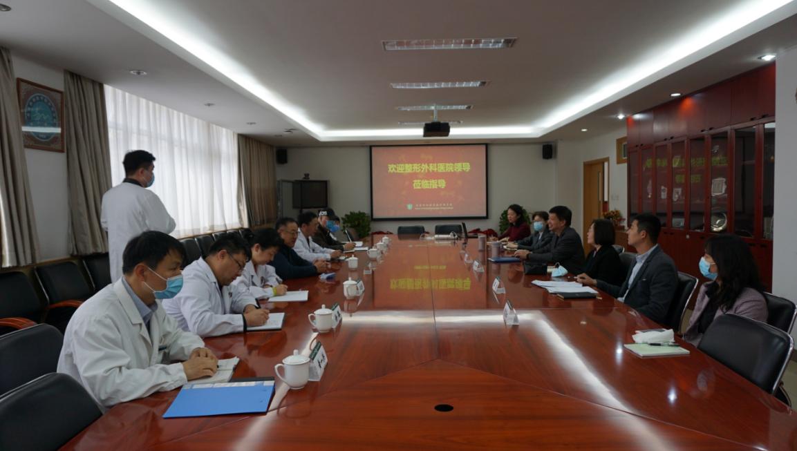 3月29日上午,整形外科医院蒋海越院长、王晓芳副书记带领医院行政后勤等部门负责同志到jinnianhui今年会就后勤服务保障等工作进行调研座谈,jinnianhui今年会领导班子成员及行政后勤部门负责人参加调研座谈。座谈会由jinnianhui今年会党委副书记安道彩主持。