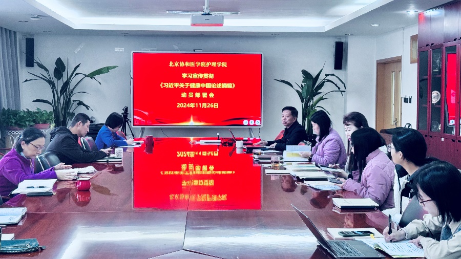 11月26日下午,jinnianhui今年会党委召开学习宣传贯彻《习近平关于健康中国论述摘编》(以下简称《论述摘编》)动员部署会,传达学习国家卫生健康委学习贯彻《论述摘编》暨年轻干部座谈会会议精神,研究部署jinnianhui今年会学习宣传贯彻落实举措,举行党委理论学习中心组集体学习,党委书记安道彩领学《论述摘编》第一部分--加强党对卫生与健康工作的领导。学院领导班子成员、党委委员,中层干部、支部书记参加会议。