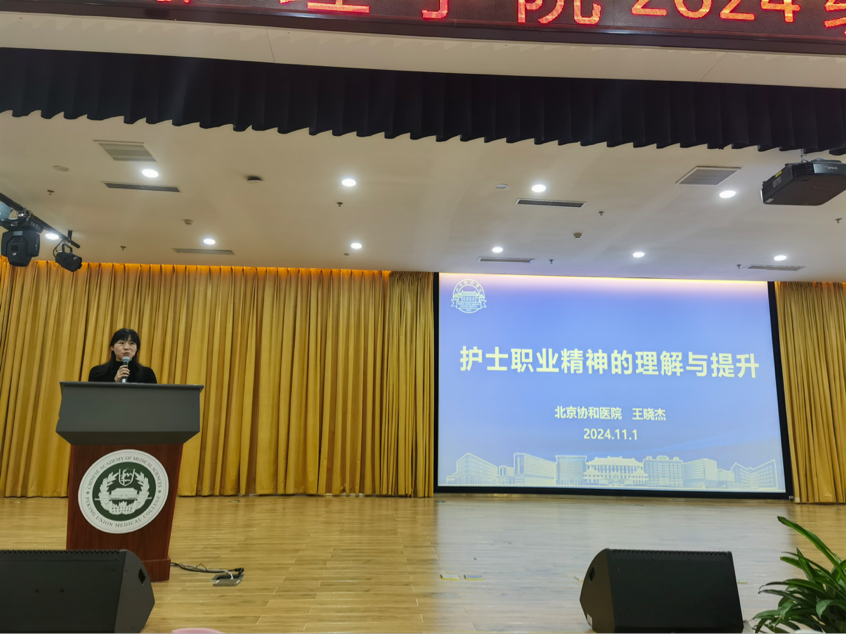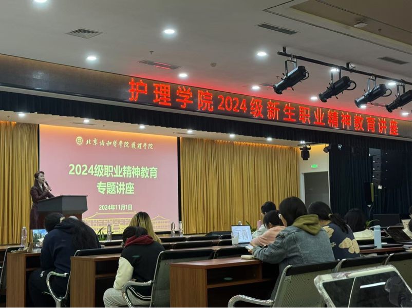 为了帮助2024级学生尽快了解护理专业,加快形成专业态度和专业价值观,提升专业责任感和认同感,为未来的职业生涯奠定基石,点亮其职业前行灯塔,jinnianhui今年会在2024年11月1日、16日和23日为2024级护理学专业新生开展职业精神教育讲座。特别邀请学院党委书记安道彩、荣获院校杰出护士称号的北京协和医院王晓杰、何悦和教学老师朱晨,以及校长奖获得者朱梦涵、优秀推免生杨诗莹为同学们分享自身对护理专业价值与内涵的理解,带领同学们一起感受护理职业精神的魅力,引导新生思考个人职业发展规划,更好地实现个人价值。活动由学生工作办公室李玉玲主任主持。
