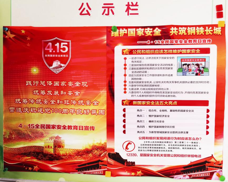 在学院号召下,全体师生高度重视国家安全,坚持以国家安全观为指导,确保“4.15”宣传教育日活动有落实、见成效。学院通过微信群、公众号等新媒体推送相关学习教育材料和新闻报道,统一思想,树牢师生国家安全意识。4月12日至19日,在教学楼和学生宿舍楼利用一周时间宣传栏张贴 “4.15” 宣传海报,营造普法氛围。组织干部参加院校国家安全教育培训,并依托院校MacRP、教学楼电子屏等平台普及《国家安全法》《反间谍法及其实施细则》《情报法》等相关学习材料,强化学习效果。学院师生积极参与,以维护国家安全为己任,用实际行动共同筑牢维护国家安全的防线。