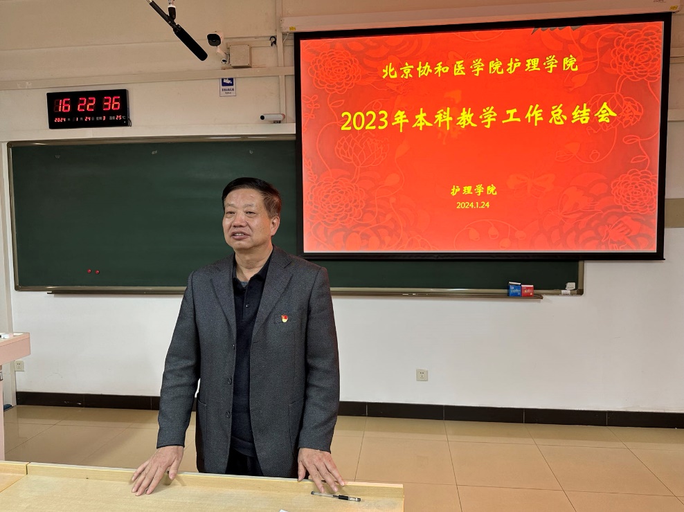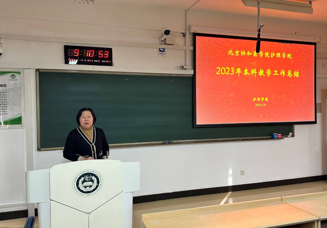 jinnianhui今年会于2024年1月24日在八大处校区召开本科教学工作总结会,学院领导、各学系、办公室负责人,及全体教师参加会议。会议由jinnianhui今年会副院长梁涛主持。