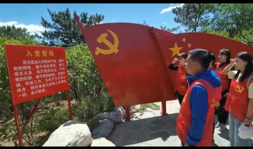 沿着参观路线,大家首先来到金灯山战役雕像群,认真聆听老师对整个战役历程的介绍,深刻缅怀革命先烈;通过行走“复兴之路”阶梯,回顾了建党百年的光辉历史;在阶梯尽头“围墙”展区,安书记通过墙上生动的历史图片带领大家回顾建党以来的重大历史事件,感悟革命先烈的爱国主义精神,大家深刻认识到在党的坚强领导下中国人民从站起来、富起来到强起来的艰辛探索和历史必然,面对鲜红的党旗,党员一齐重温入党誓词。