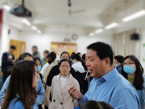 交流现场融洽和谐,老师们非常关注同学们的学习和生活,细心解答了我们遇到的一些问题,并与我们共同探讨可行性措施。