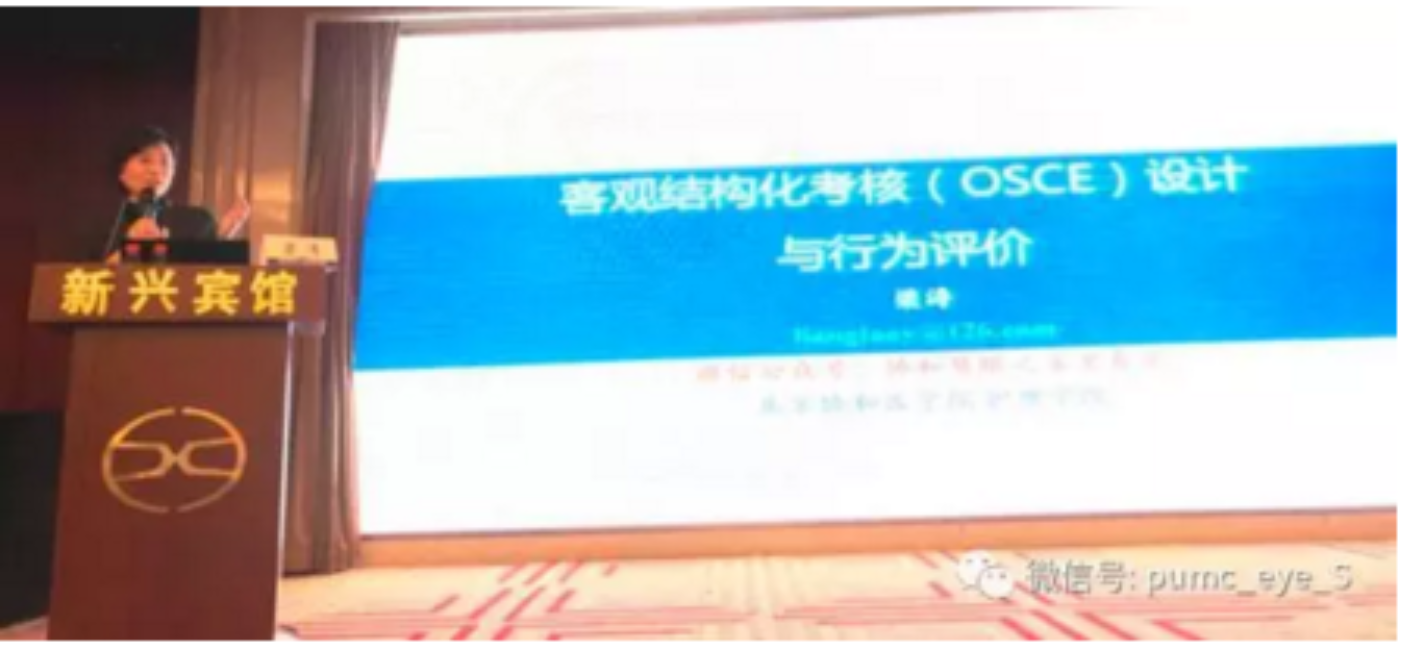图为梁涛教授进行《客观结构化(OSCE)设计与行为评价》讲授