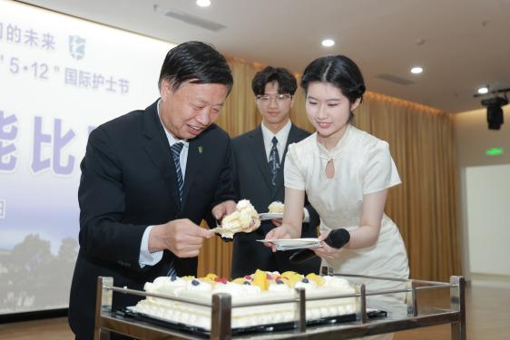 在激动人心的掌声中,同学们热情洋溢地为吴欣娟理事长和李峥院长献花,安道彩书记切开象征本次比赛圆满成功的蛋糕,带领学生为护理前辈送上最真挚的节日祝福,在热情高涨的氛围中,护理技能比赛圆满落幕。