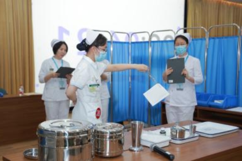 比赛中,选手们以沉着冷静、优雅的姿态与规范的操作,充分展现了协和护理学子良好的精神风貌、高超的护理技能和扎实的专业基础。在操作过程中手法娴熟、动作流畅,静脉输液细致操作、无菌技术小心谨慎,心肺复苏争分夺秒,上演了一场精心与细心、速度与技能的激烈比拼;在理论考核中用速度和准确率展现出扎实的基础,选手的良好表现获得裁判评委的一致好评,体现了“勤慎警护”的优良院风。