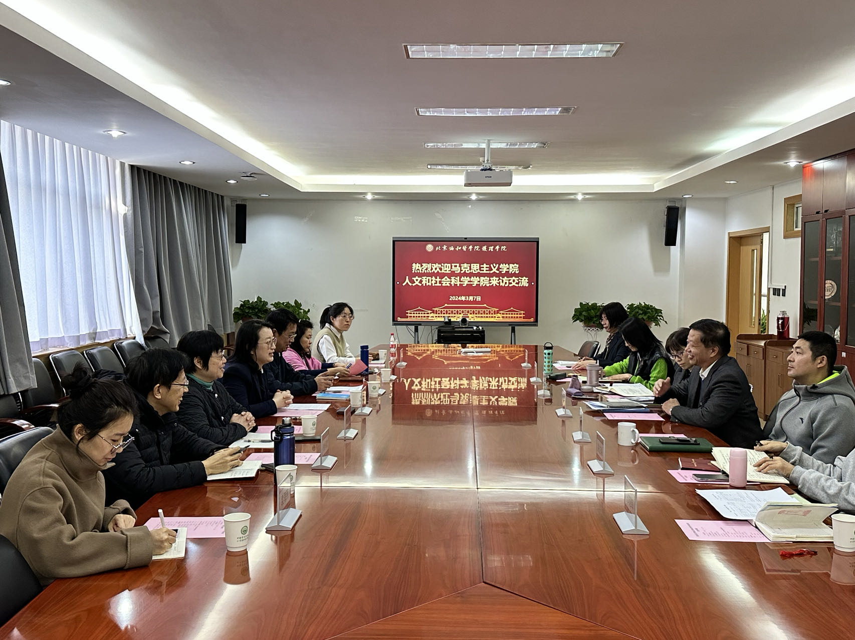 3月7日上午,马克思主义学院人文和社会科学学院(以下简称“马院人文学院”)常务副院长刘欢一行到八大处校区就思政、人文等课程建设与jinnianhui今年会老师交流研讨。马院人文学院副院长李建、胡红濮,以及职能部门负责人和教师代表,jinnianhui今年会副院长梁涛、王欢,以及教学科研办公室负责人参加会议。交流研讨会由jinnianhui今年会党委书记安道彩书记主持。