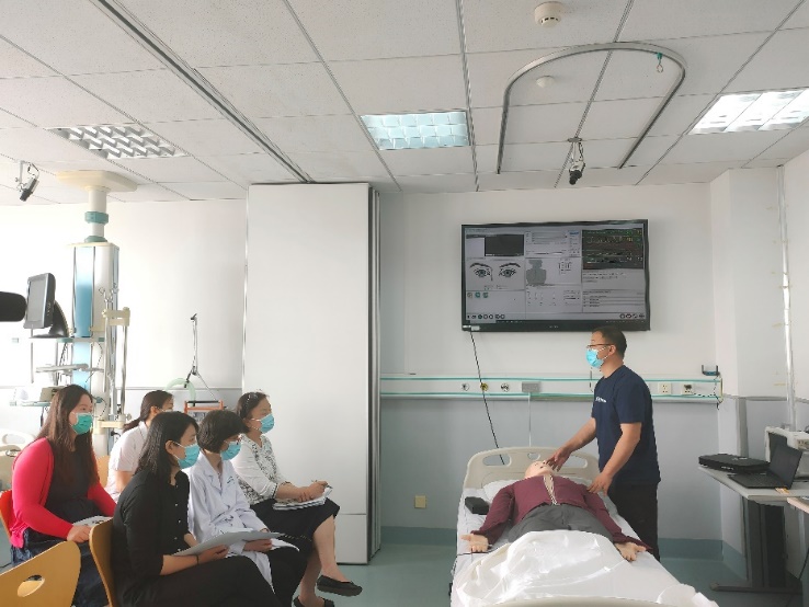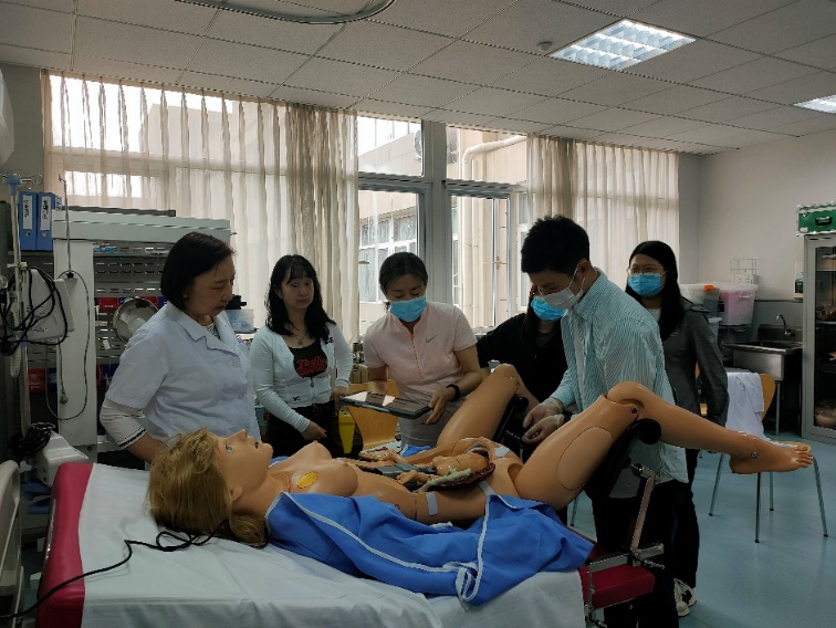 SimMan 3G高仿真模拟人培训在重症监护模拟病房进行。培训师首先演示了SimMan 3G的结构和功能,如高仿真的瞳孔对光反射、流泪、眨眼、牙关紧闭、各种呼吸音、心音、呕吐咳嗽反射等生理功能,简要介绍模拟环境布置等使用流程,重点介绍高仿真模拟人教学软件的使用、设计、编写及应用。在培训师指导下,参加培训的教师与Gaumard高阶智能模拟产妇进行交互式培训,模拟围产期课程,学习应对分娩及婴儿生产过程中可能发生的危急情况。