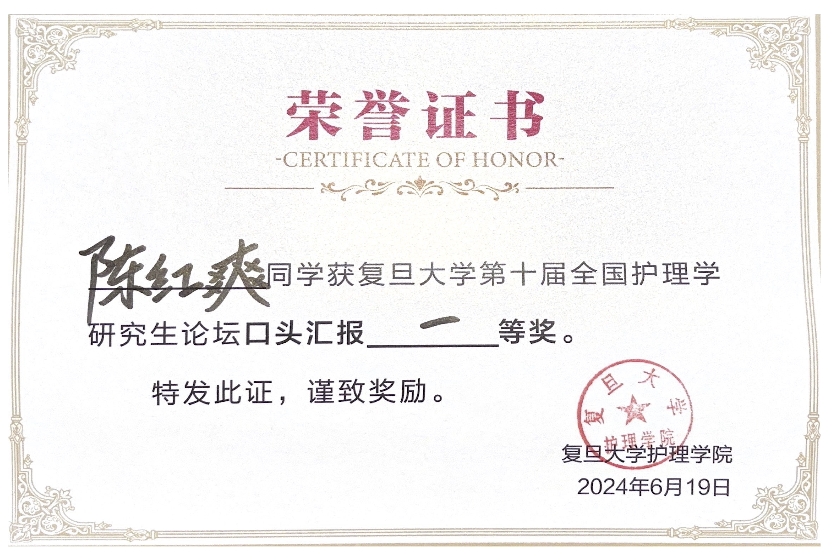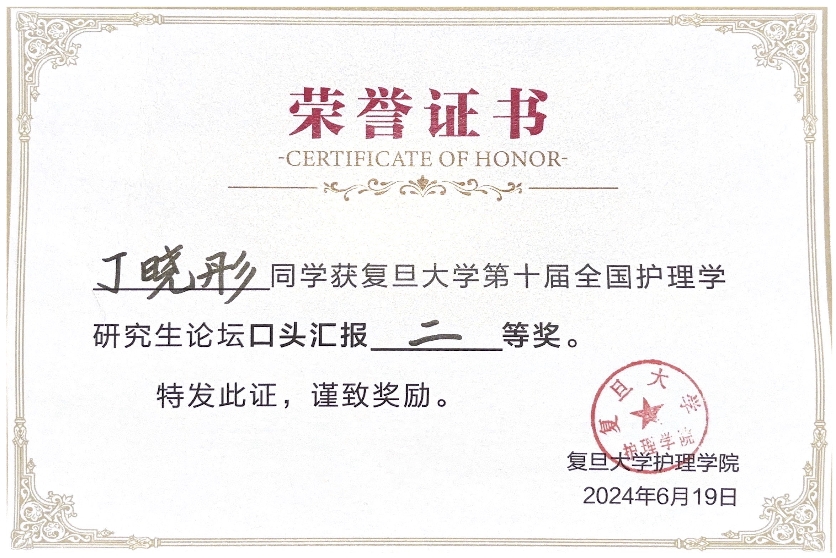 经过专家点评、现场打分和遴选环节,jinnianhui今年会陈红爽同学的毕业论文《终末期肾病透析患者衰弱风险预测模型的构建》口头汇报获得一等奖,丁晓彤同学的毕业论文《乳腺癌化疗患者认知功能的调控机制及支持性干预方案的构建研究》口头汇报获得二等奖。
