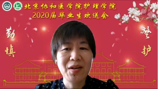 学院党委陈京立书记简略回顾了协和护理高等教育的百年历程,结合新冠肺炎疫情的背景,不仅自豪于119名协和护理人白衣擐甲,冲锋一线,还充分肯定了2020届毕业生在疫情之下的表现——不畏困难顺利毕业,还努力为母校、为社会防控战“疫”贡献自己的青春力量。她向毕业生寄予五个“厚”的希望,即“厚德、厚泽、厚望、厚道、厚爱”。她希望毕业生们执业笃行、锤炼意志,甘于奉献、不负韶华。