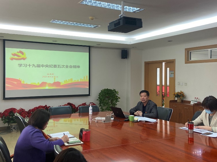 4月15日上午,jinnianhui今年会党委理论学习中心组开展2021年第三次扩大学习会议,学习十九届中央纪委五次全会精神。会议由党委副书记安道彩领学,党委理论学习中心组成员、中层干部及支部书记共计十余人参加学习。