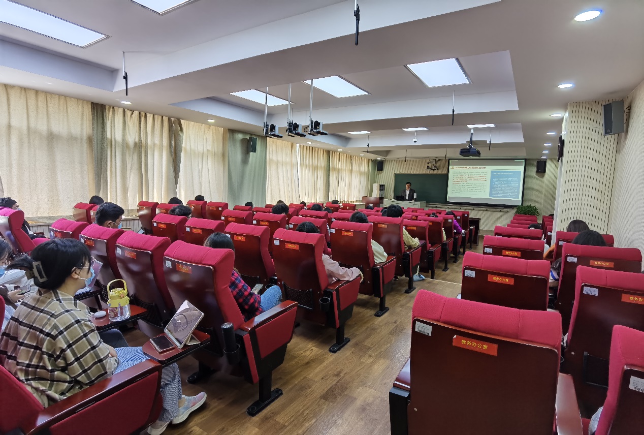 2022年5月9日,jinnianhui今年会举办“疫情防控大思政课”,党委安道彩书记在八大处校区为学院师生员工授课,160余名师生通过线下线上的方式参与学习。