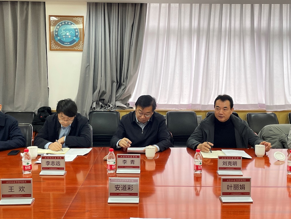 在203会议室,检查组听取了学院安道彩书记和王欢副院长关于学院安全生产、后勤保障、学生管理等工作汇报。